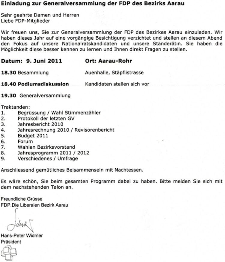 Einladung zur Generalversammlung 2011